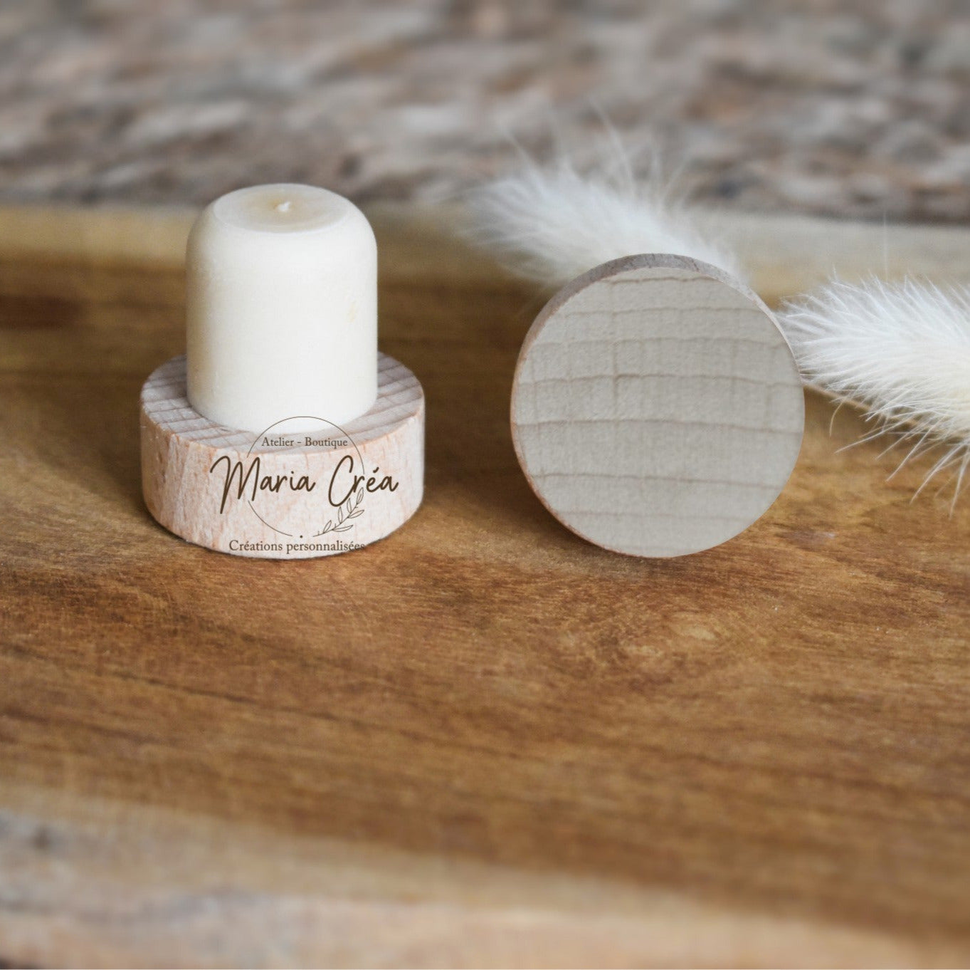 Un bouchon de vin en bois personnalisée avec l'inscription de votre choix.