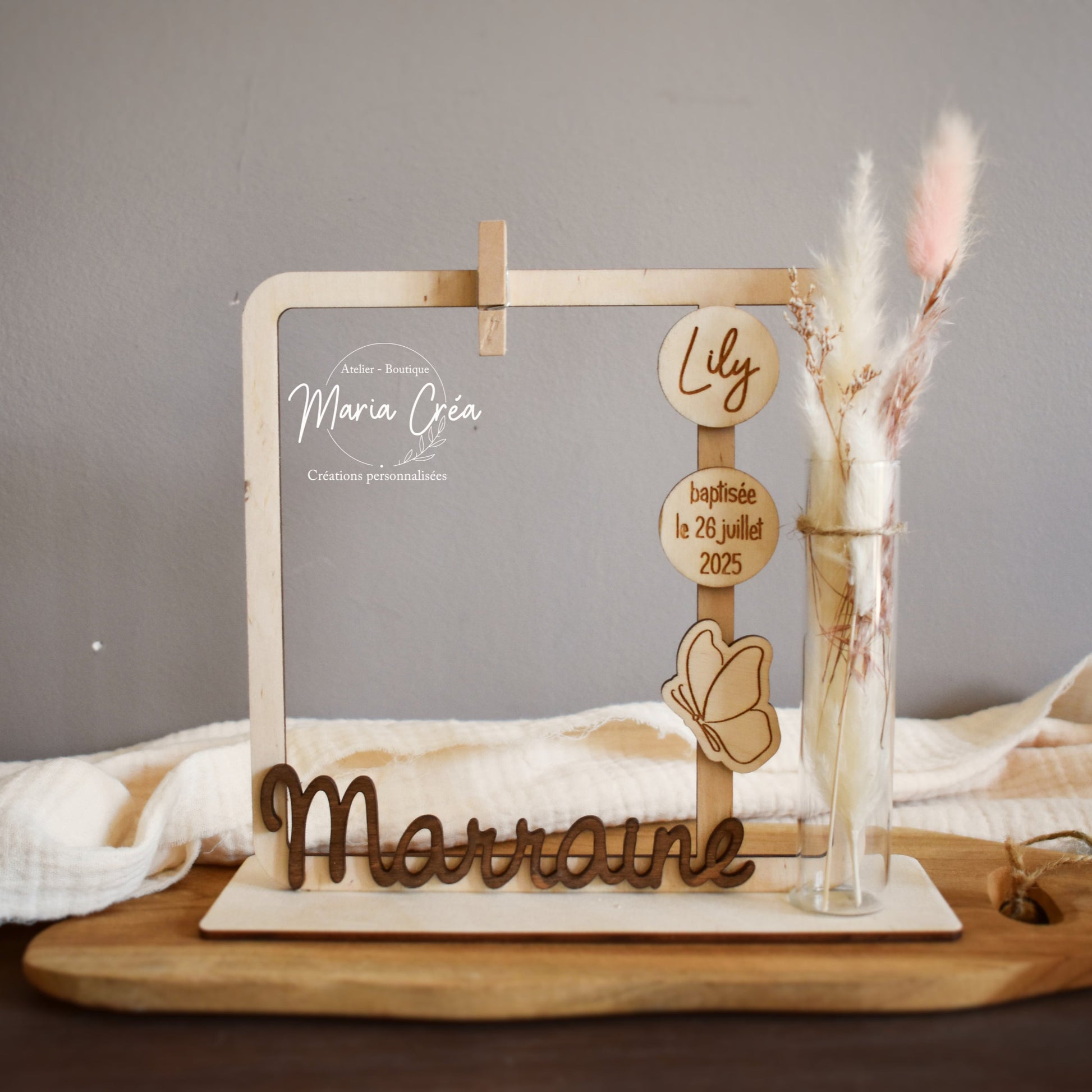 Cadre photo avec pince & fleurs séchées - Modèle papillon