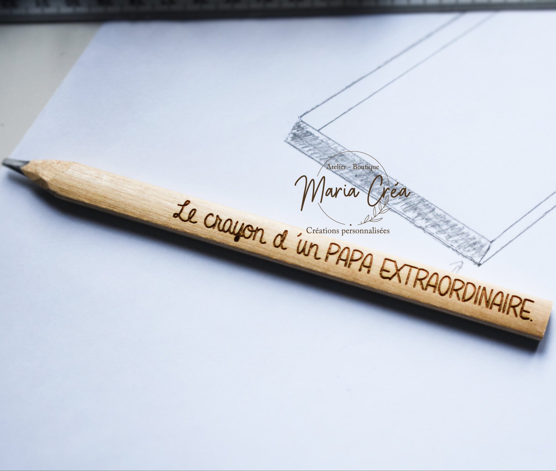 Un joli crayon de charpentier en bois, gravé avec amour, pour marquer ses plus belles idées… ou ses futurs chefs-d'œuvre.