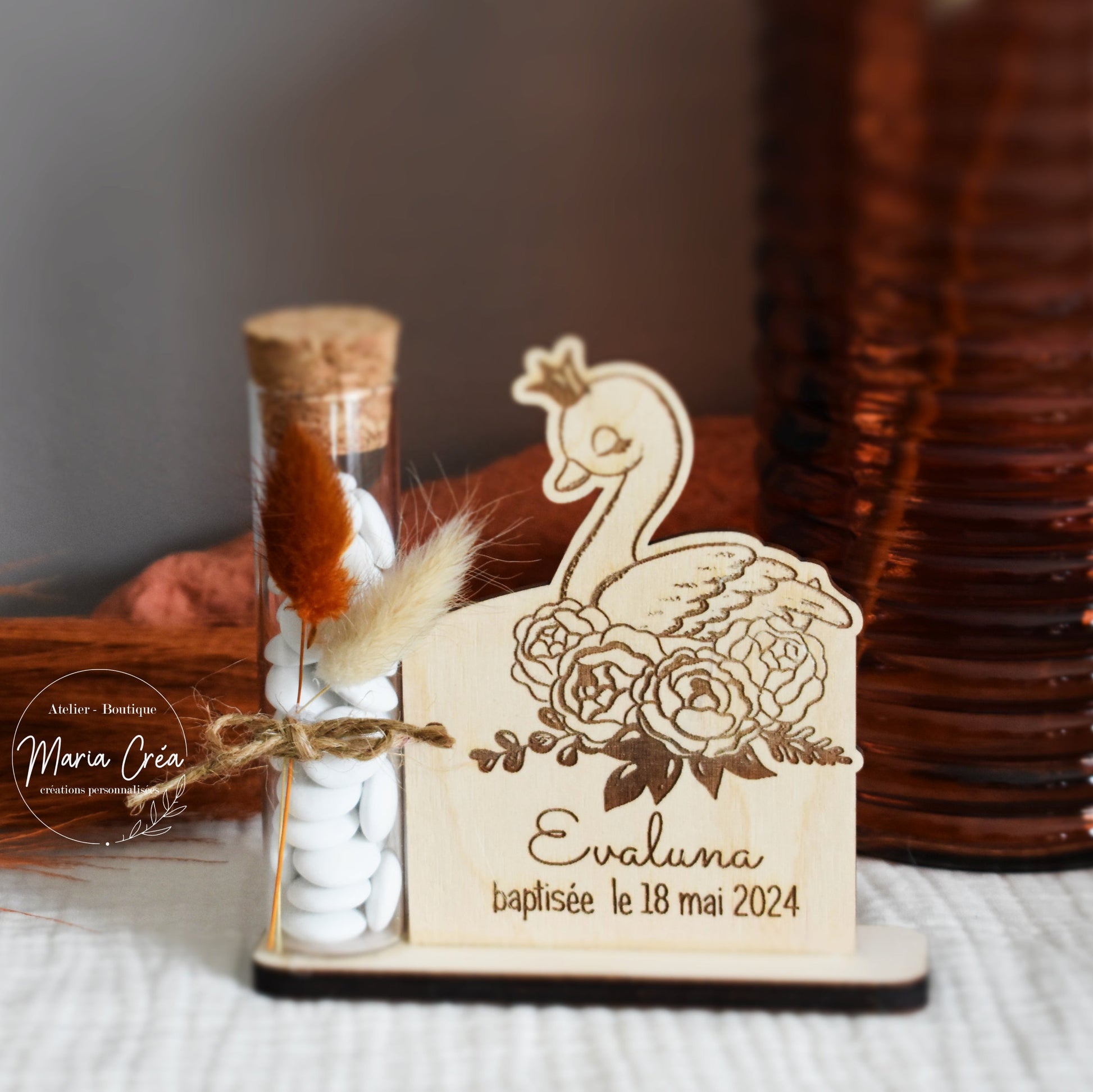 Pour célébrer les moments magiques de la vie : nos remerciements en bois, des cadeaux d'invités pour les baptêmes, communions, mariages ! Nous pouvons garnir les petites fioles de dragées, fleurs séchées,... Aussi possible en grand format ou en cadre pour les cadeaux parrain/marraine/parents/grands-parents.