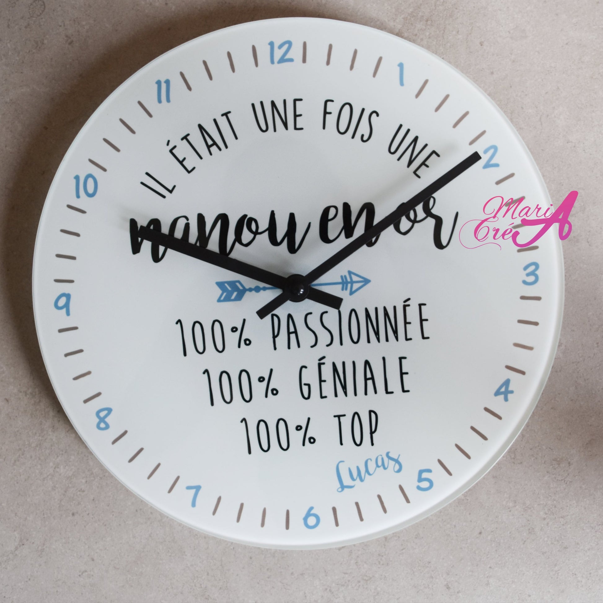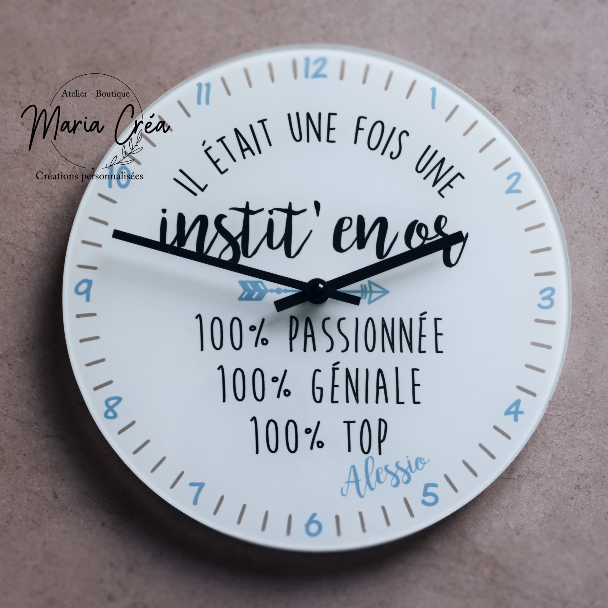 Une horloge en verre est le cadeau parfait pour une institutrice ou un instituteur ! Offrez une horloge décorative et originale à un instituteur passionné par l’univers. La personnalisation permet d'ajouter un prénom ou un petit message supplémentaire pour un souvenir vraiment unique.