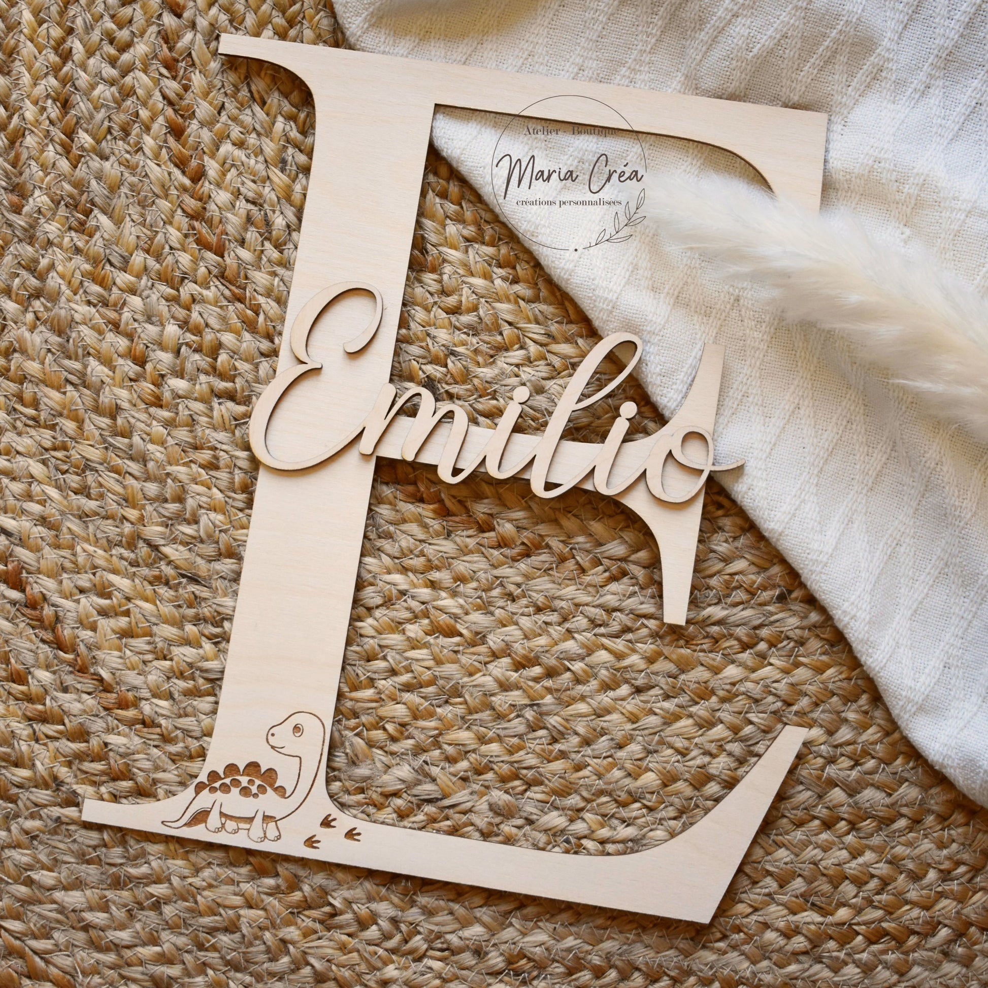 Lettrine prénom en bois - modèle dinosaure