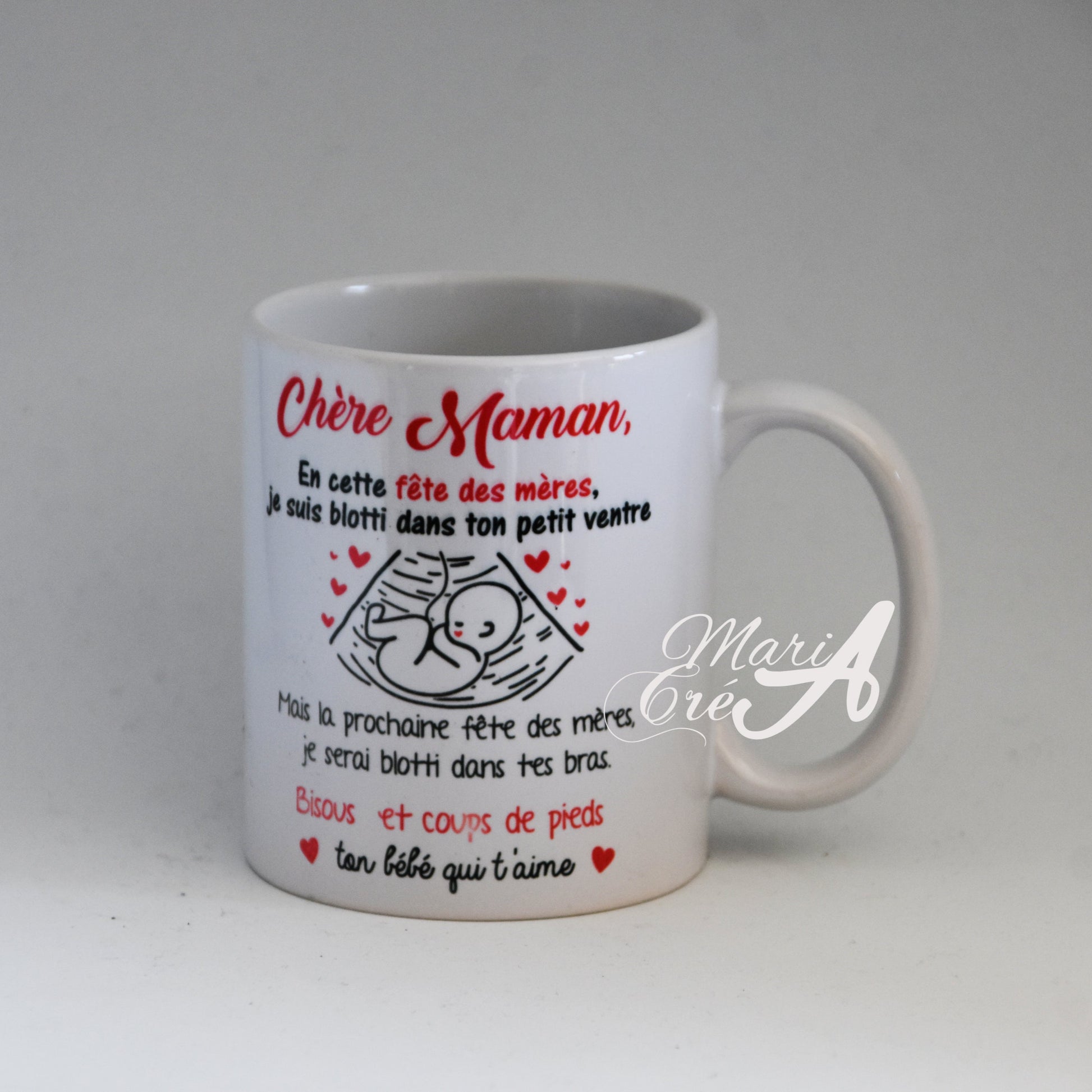 Parce qu’il n’y a rien de plus magique que de devenir maman, ce mug personnalisé célèbre ce moment unique avec tendresse. Le motif "Écho" met à l’honneur ce tout premier lien si fort entre une mère et son bébé, en immortalisant l’instant précieux de la première échographie.
