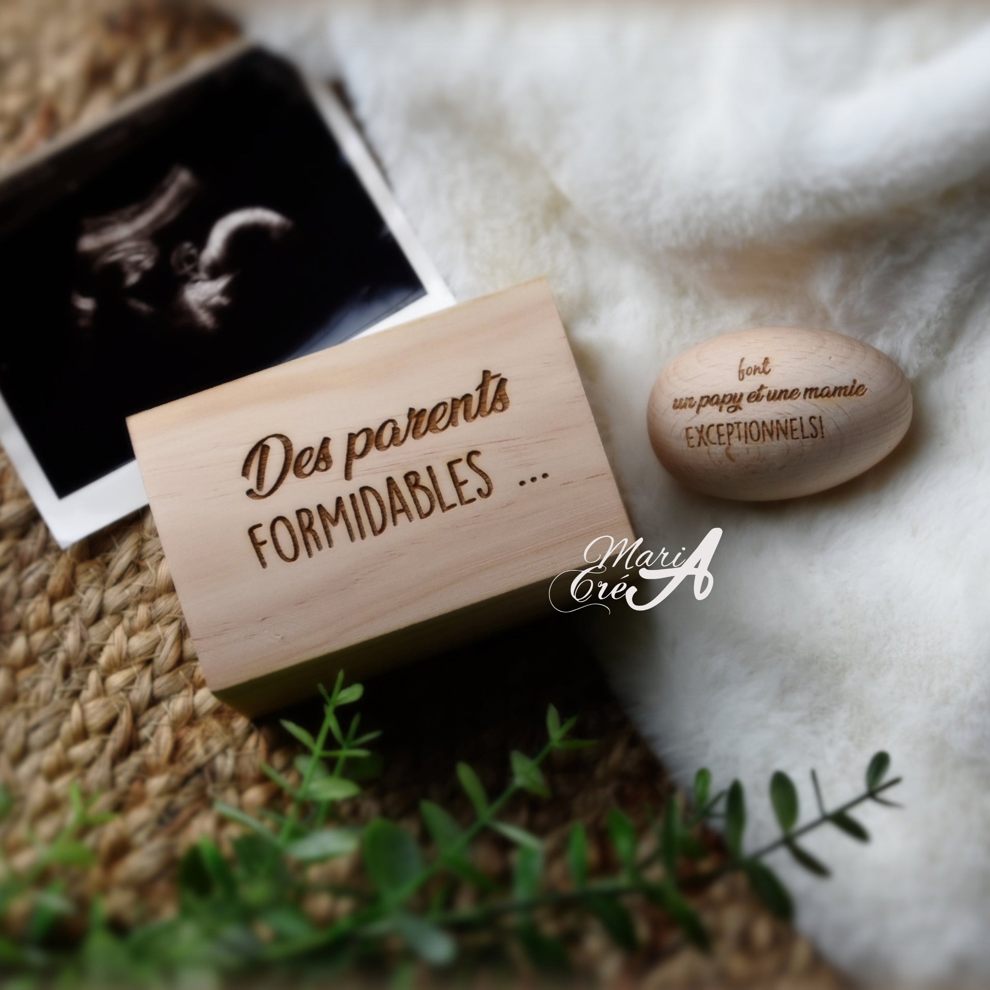 Oeuf en bois annonce grossesse dans sa boite "Des parents formidable..."