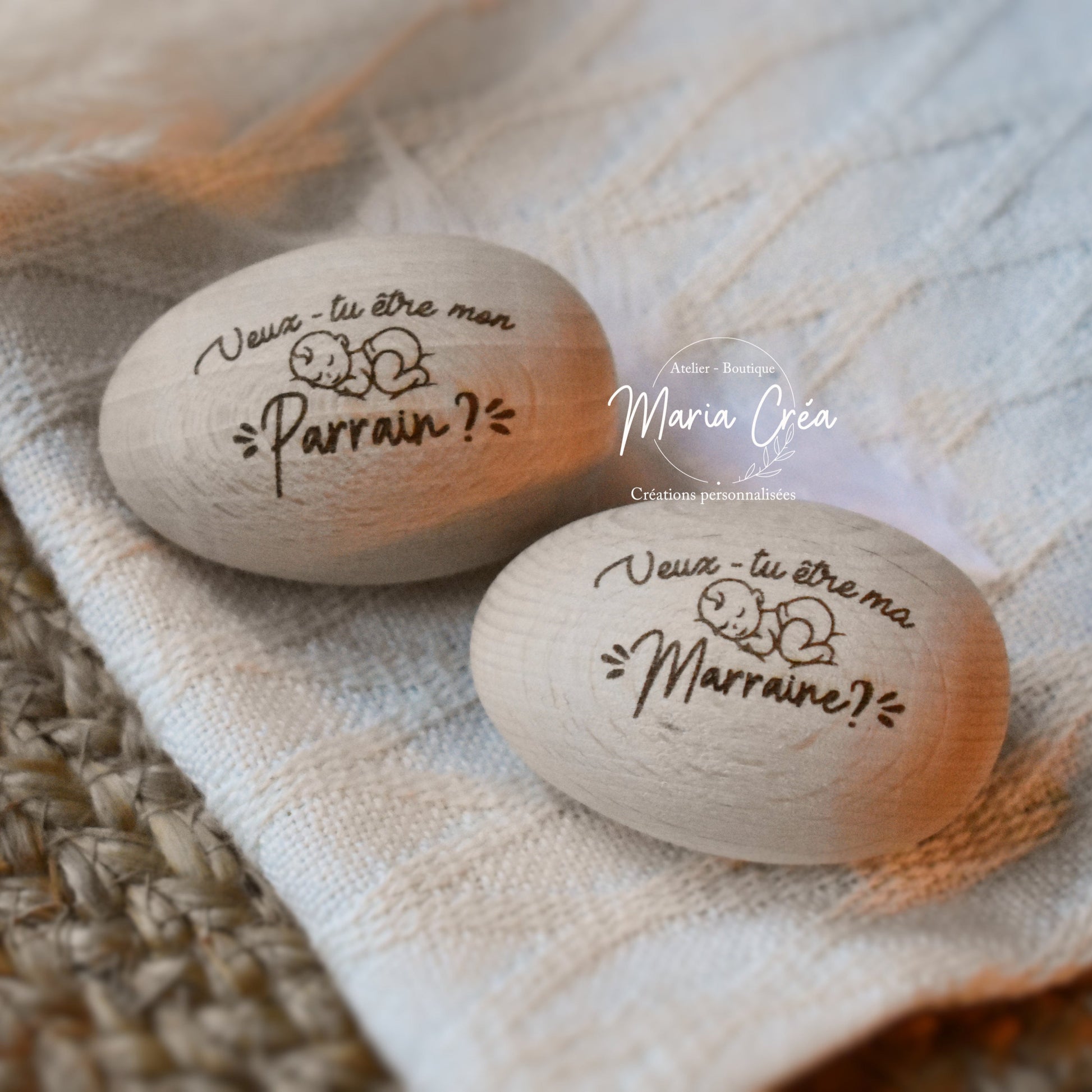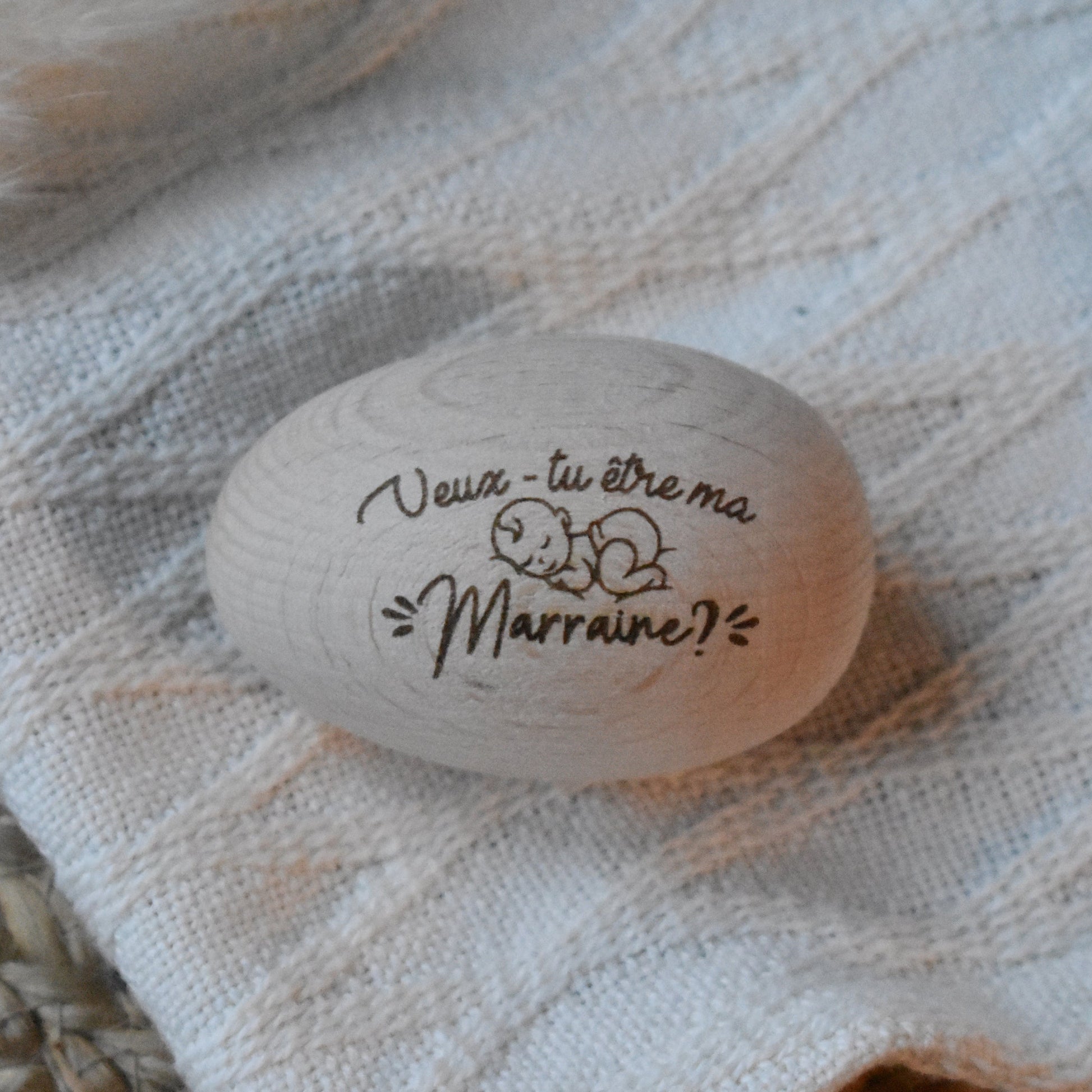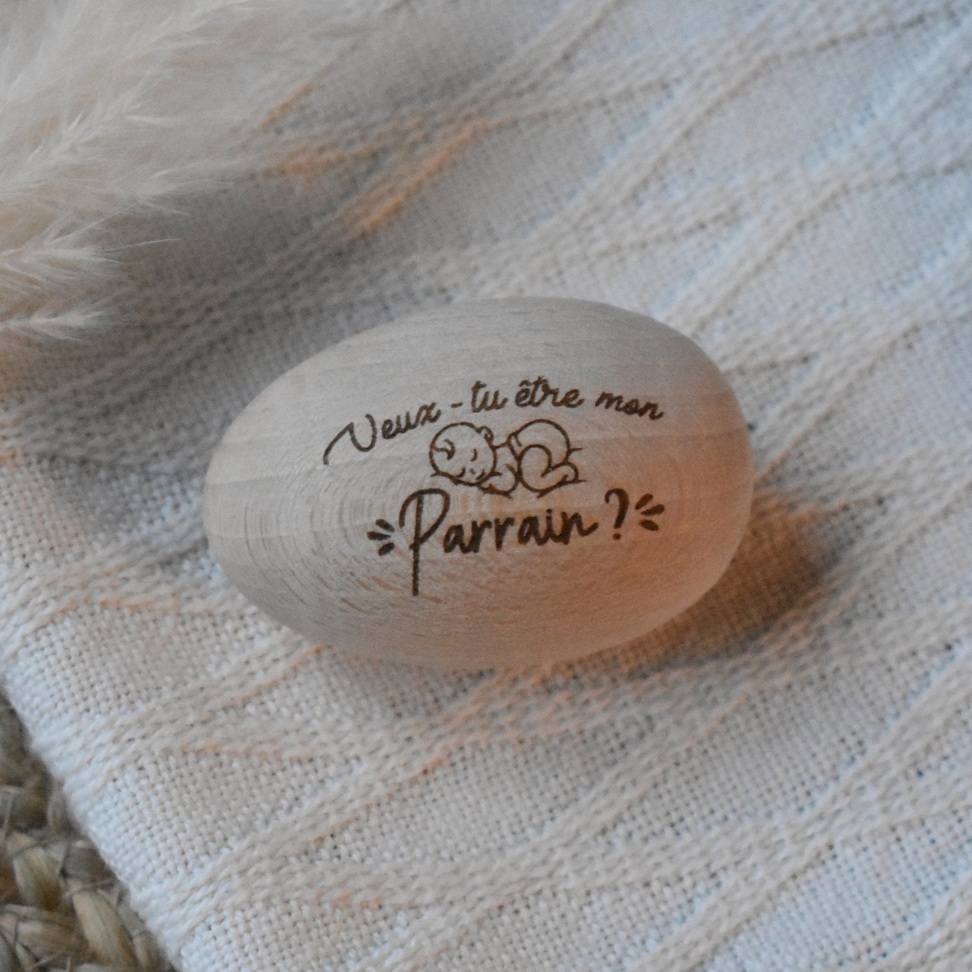 Découvrez nos adorables petits œufs en bois gravés pour demander au parrain ou à la marraine d’accompagner votre enfant dans cette belle aventure.