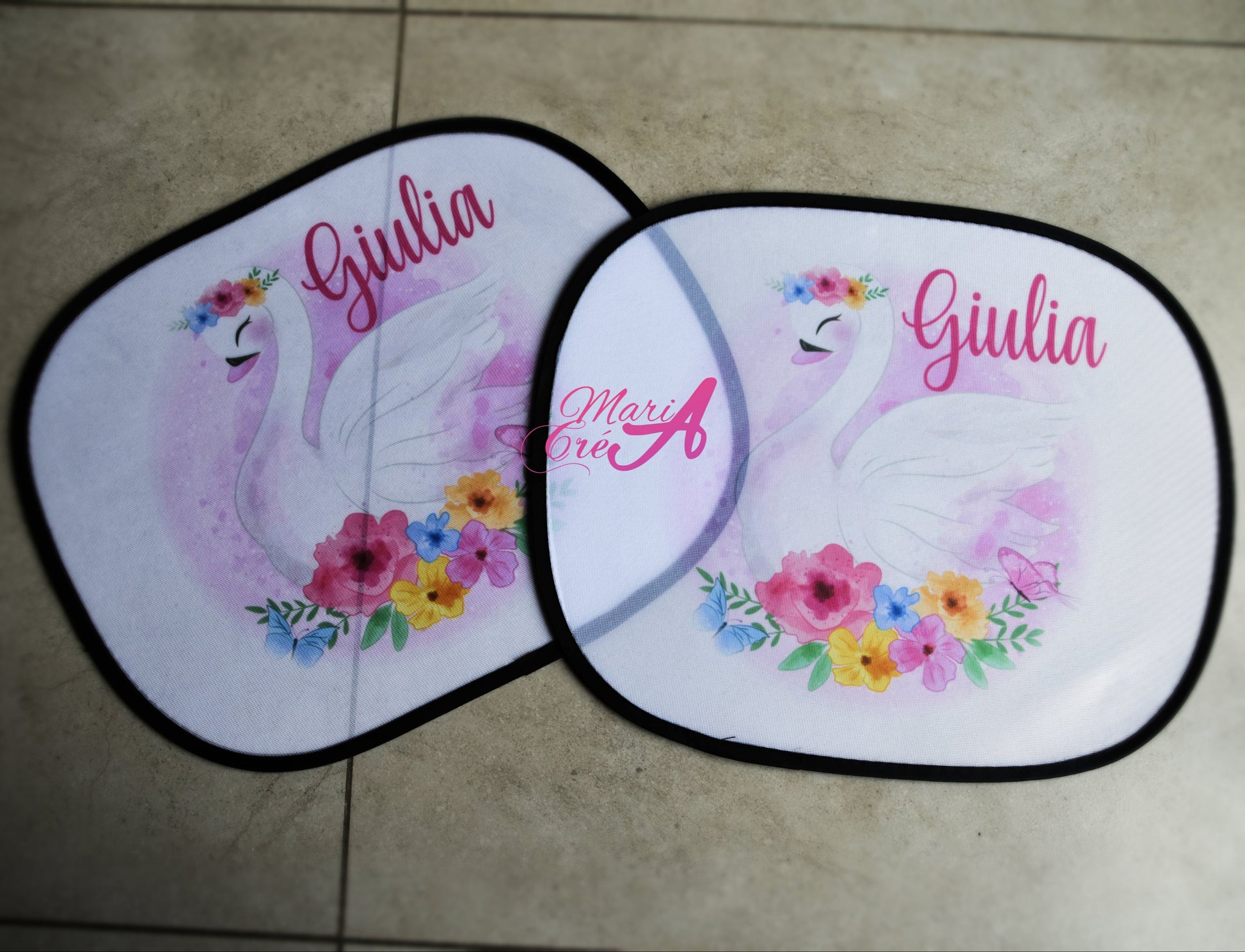 Nos pare-soleil décoratifs sont parfaits pour personnaliser l’arrière de votre voiture avec un motif doux et enfantin, accompagné du prénom de votre enfant.