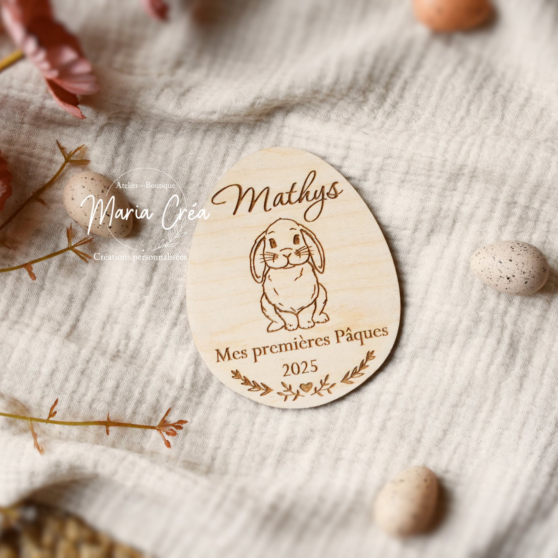 Immortalisez ce moment magique avec notre plaque en bois gravée "Mes Premières Pâques"