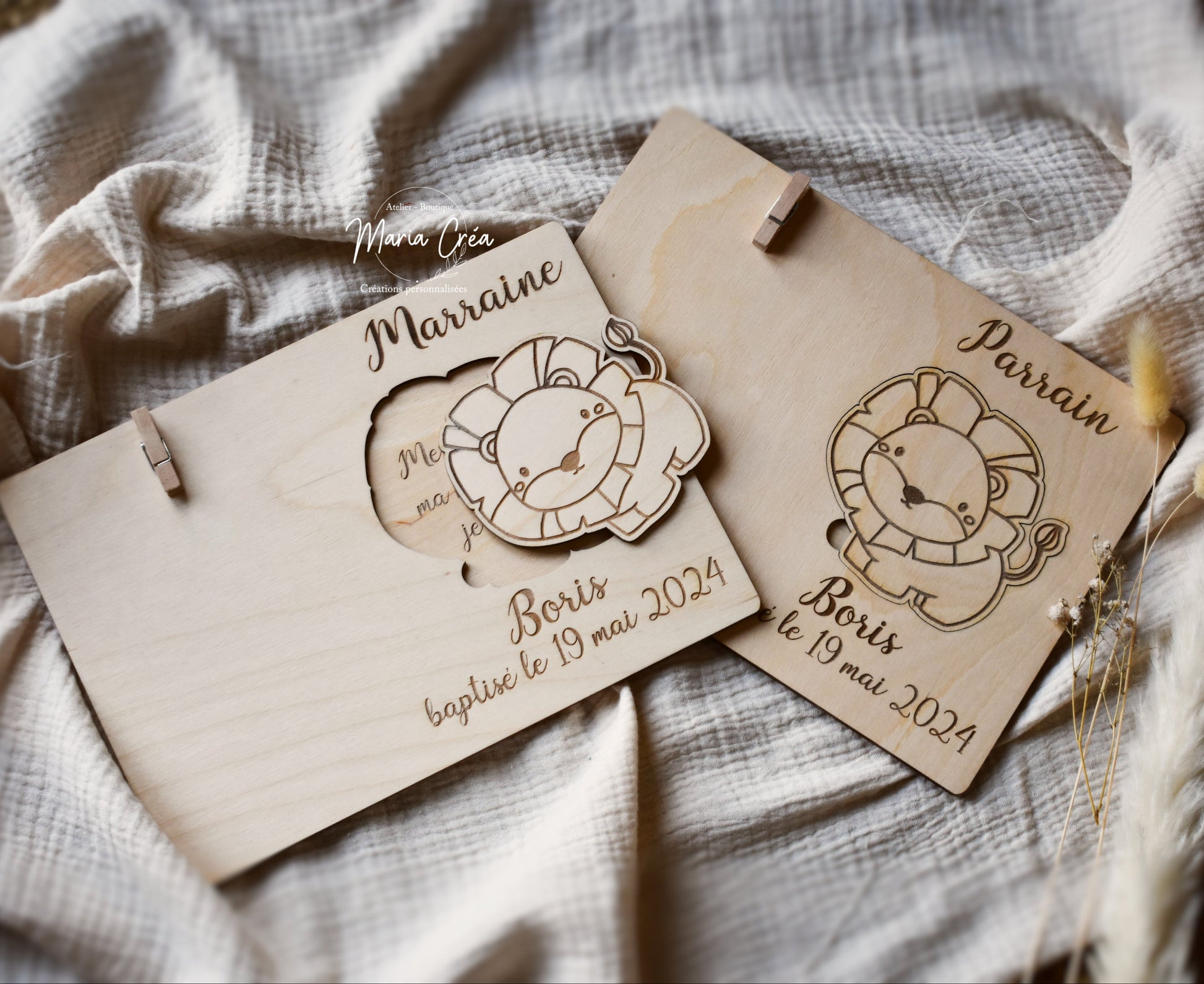 La plaque est personnalisable avec le prénom et la date de baptême de votre enfant, ainsi qu'une petite citation ou message en rapport avec l'événement. Ils pourront la conserver en souvenir de ce jour spécial, tout en ayant un objet décoratif pour leur maison. Vous pouvez choisir le motif en fonction du thème de la fête.