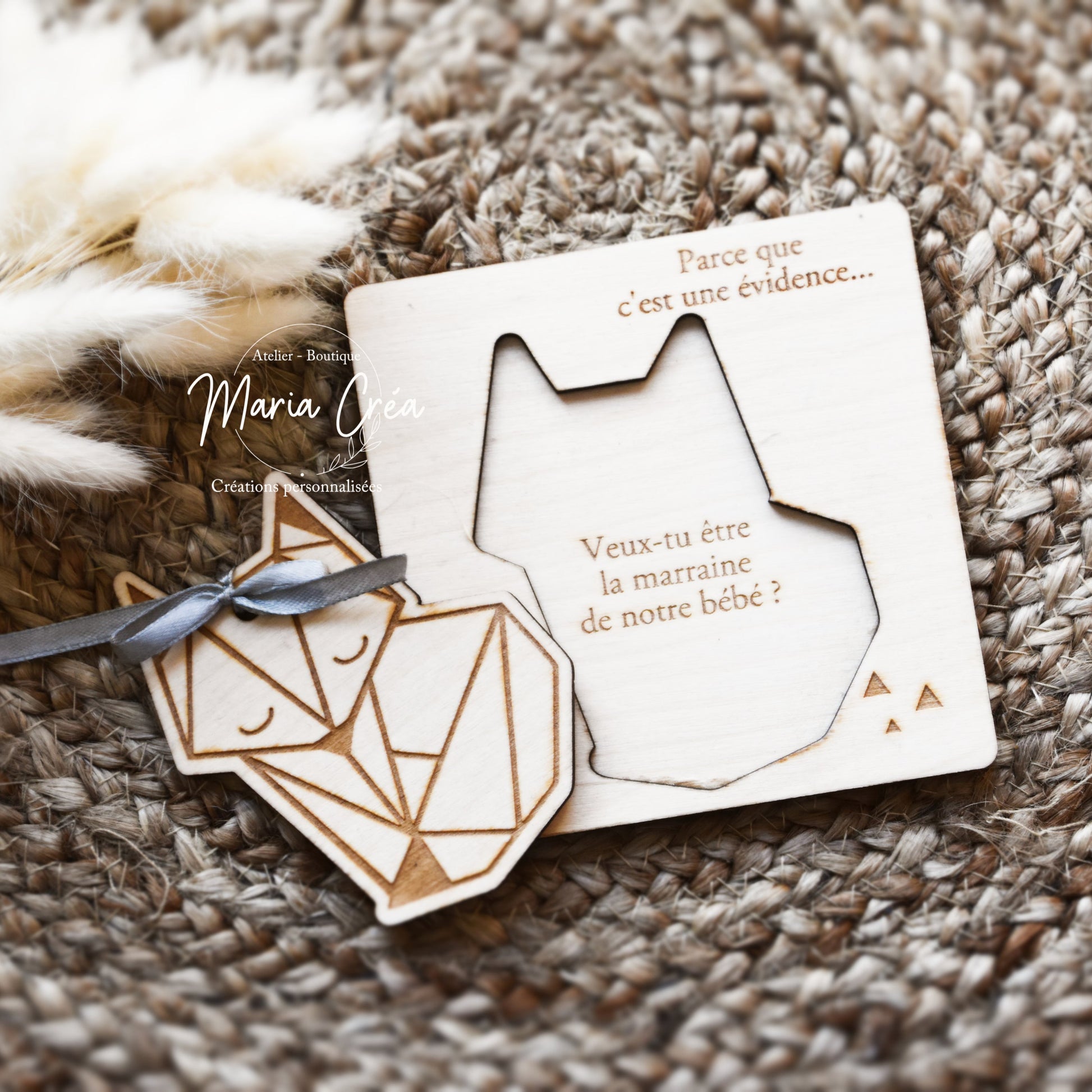 Plaquette puzzle demande marraine / parrain - renard géométrique