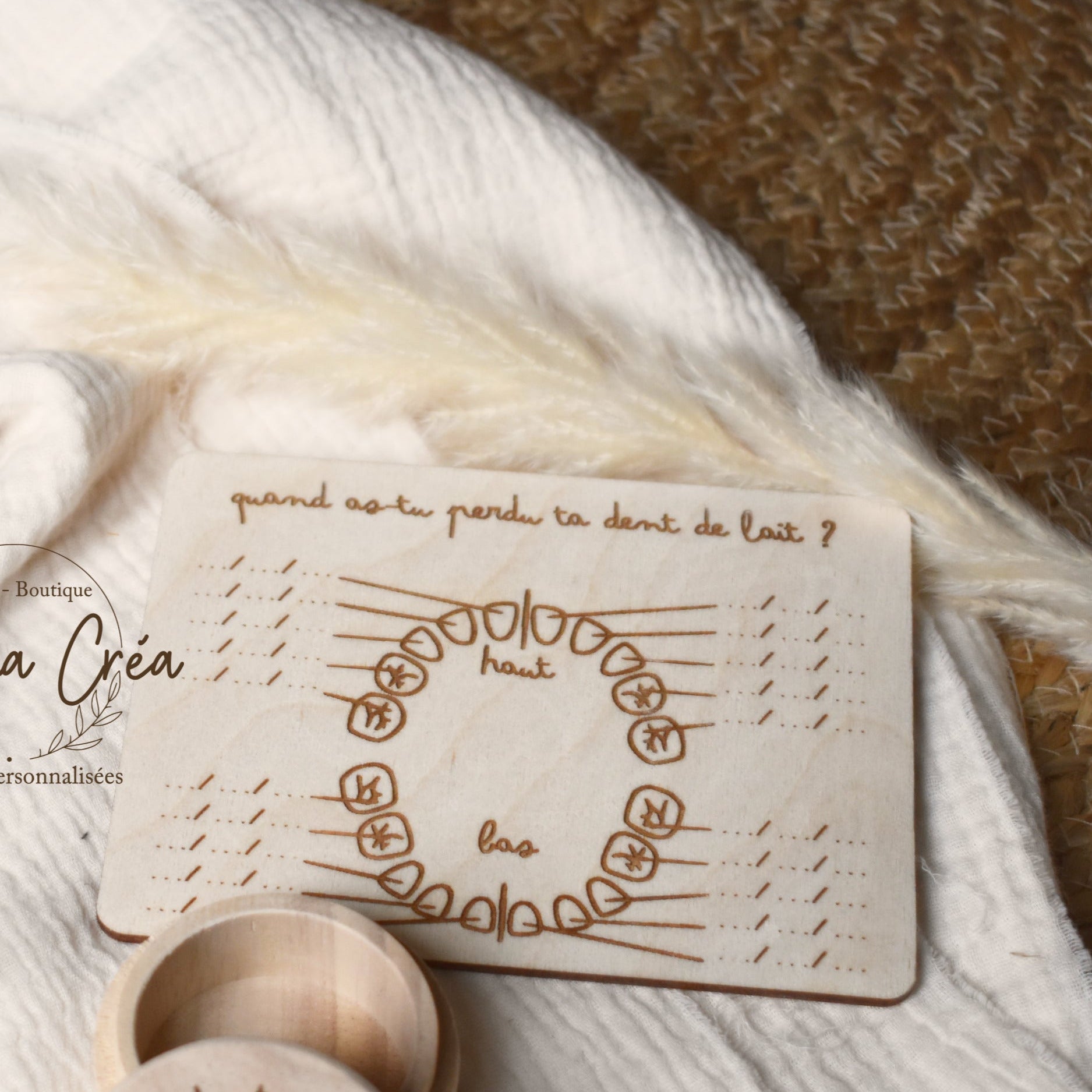 Grâce à cette plaquette en bois personnalisée, vous pouvez noter la date à laquelle la dent est tombée et garder ce doux souvenir précieusement.