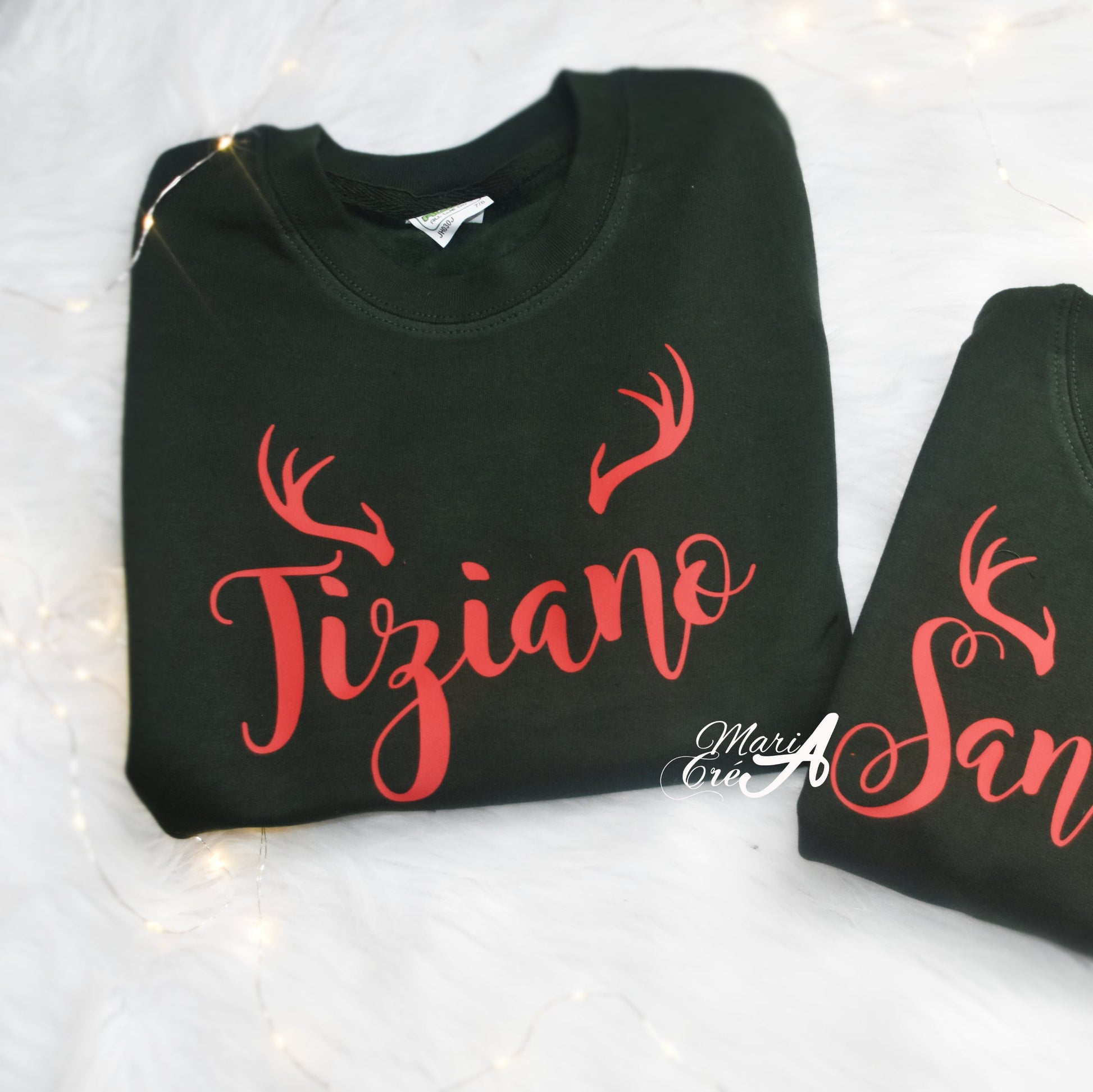 Pull de Noël personnalisé avec prénom et bois de cerf - Adulte