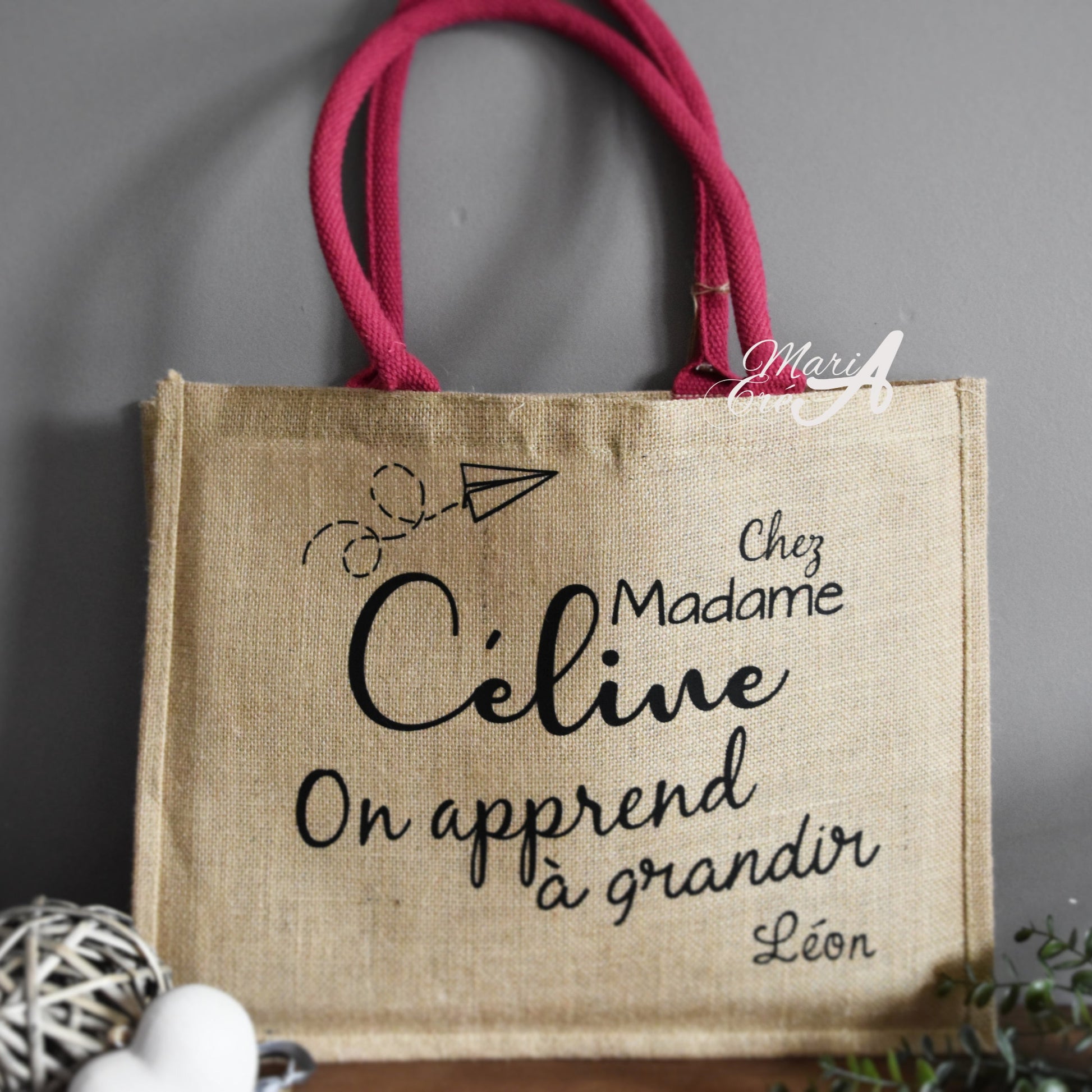 Sac en toile de jute "Chez madame, on apprend à grandir"
