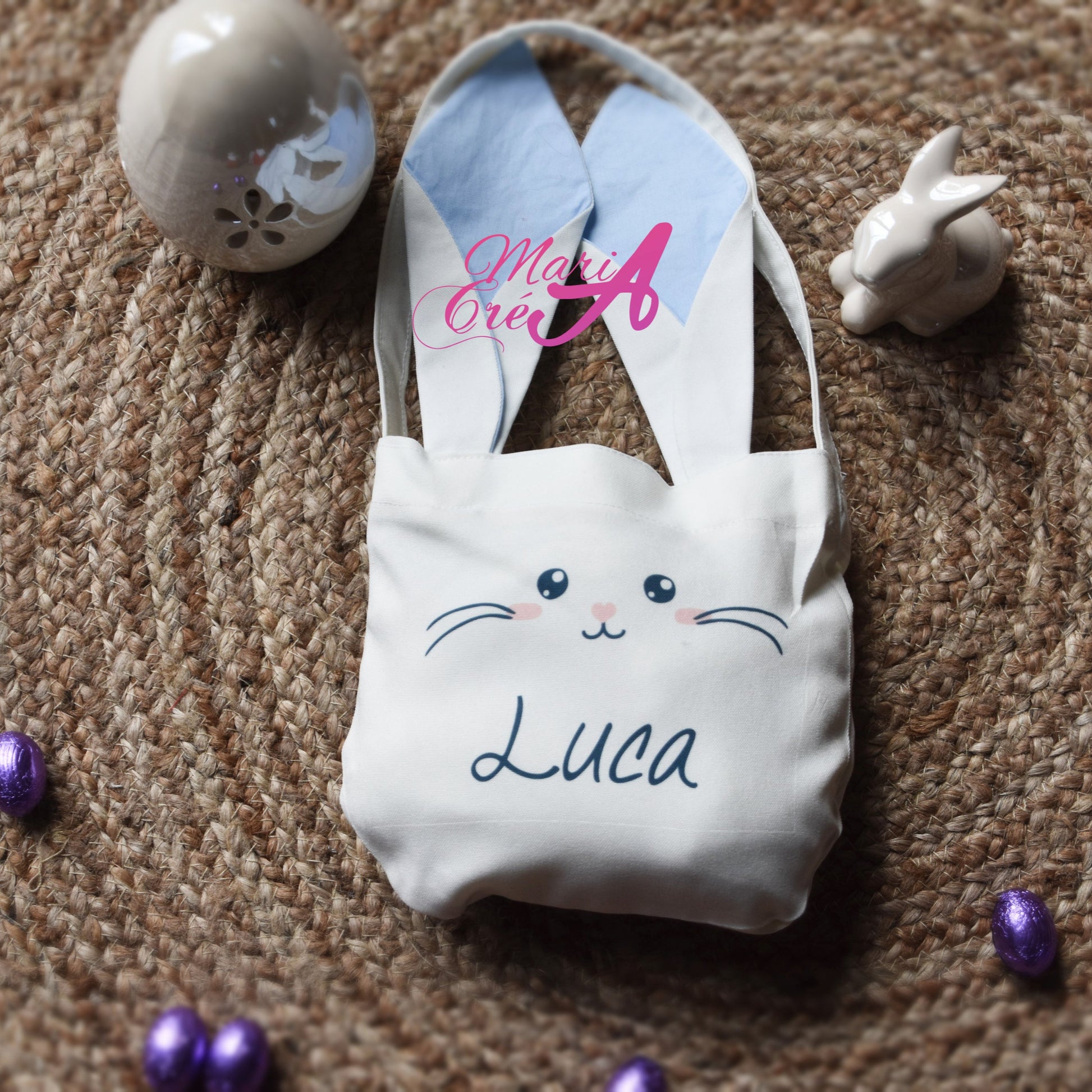 Faites briller les yeux des petits (et des grands !) avec notre adorable sac lapin aux longues oreilles, parfait pour la chasse aux œufs de Pâques.
