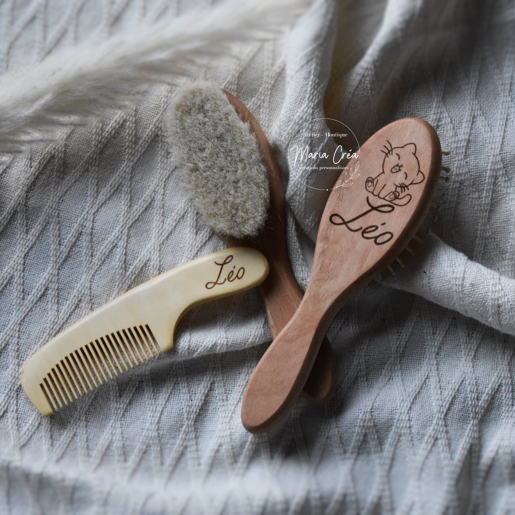 Set de brosse en bois gravé convient aussi bien aux tous petits qu’aux plus grands.