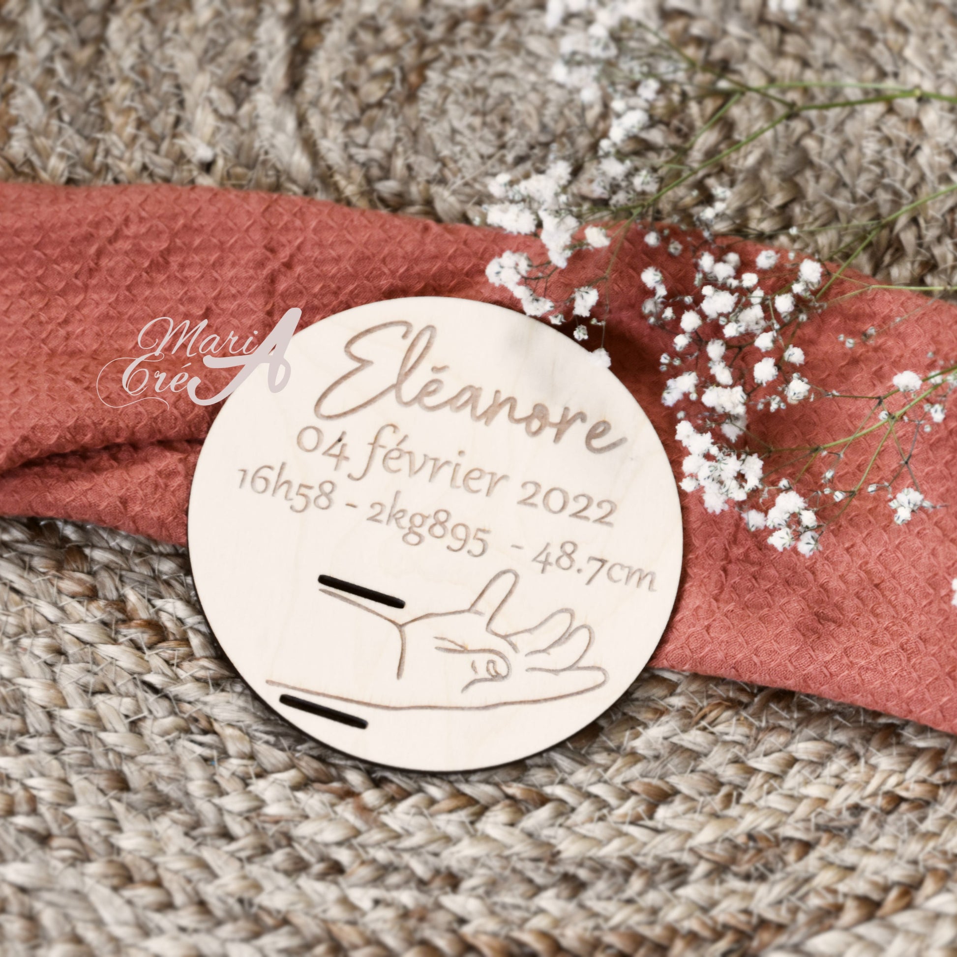 Une jolie plaque en bois pour y accrocher le bracelet de naissance de votre tout petit. Vous pourrez ainsi garder en souvenir ce petit bracelet et le mettre en valeur.