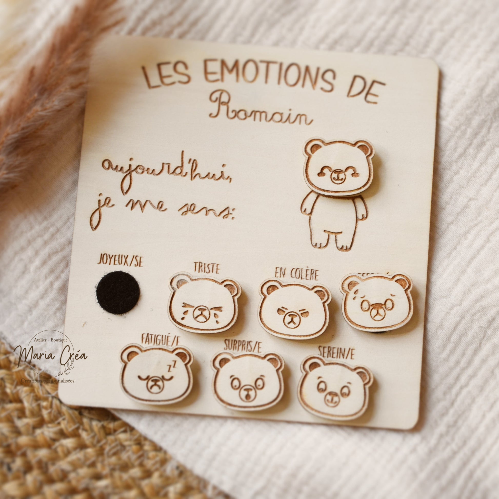 7 émotions incluses : Joyeux/se, Triste, En colère, Effrayé/e, Fatigué/e, Surpris/e, Serein/e